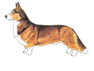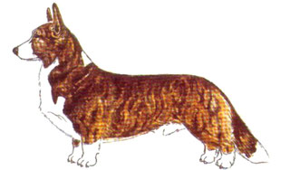 Brindle Cardigans können beliebige Schattierungen vom kräftigen Rot mit ein wenig dunkler Stromung bis zu fast schwarz mit etwas hellerer Stromung aufweisen.