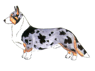 Bluemerle Cardigans haben alle Schattierungen von einem hellen, silbrigen bis dunklen Blau mit schwarzen Flecken in unterschiedlichem Maße im Fell.