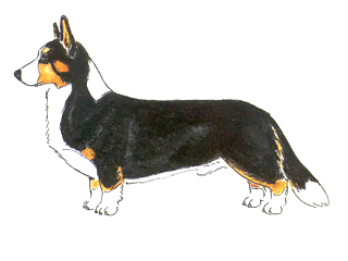 Tricolour brindle-point Cardigans sind schwarz-weiß mit unterschiedlich starken brindle Abzeichen. Auch Cardigans, die so aussehen, als ob sie nur schwarz-weiß wären, haben brindle Abzeichen.